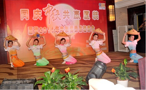 隆隆鼓聲拉開了晚會的序幕,伴隨著掌聲、歡呼聲,現(xiàn)場嘉賓和全體“廈裝”同仁的熱情一浪高過一浪。主持人幽默詼諧,員工熱情高昂,晚會各部分在“同慶中秋、共贏廈裝”的主題引導(dǎo)下,將豐富有趣的“廈裝”企業(yè)文化問答、滑稽的小丑魔術(shù)表演、驚險的雜技及古典的青花瓷舞蹈表演等等串聯(lián)在一起,柔媚的燈光,熱情的音樂,整個會場顯得格外輕松愉悅,熱情洋溢。